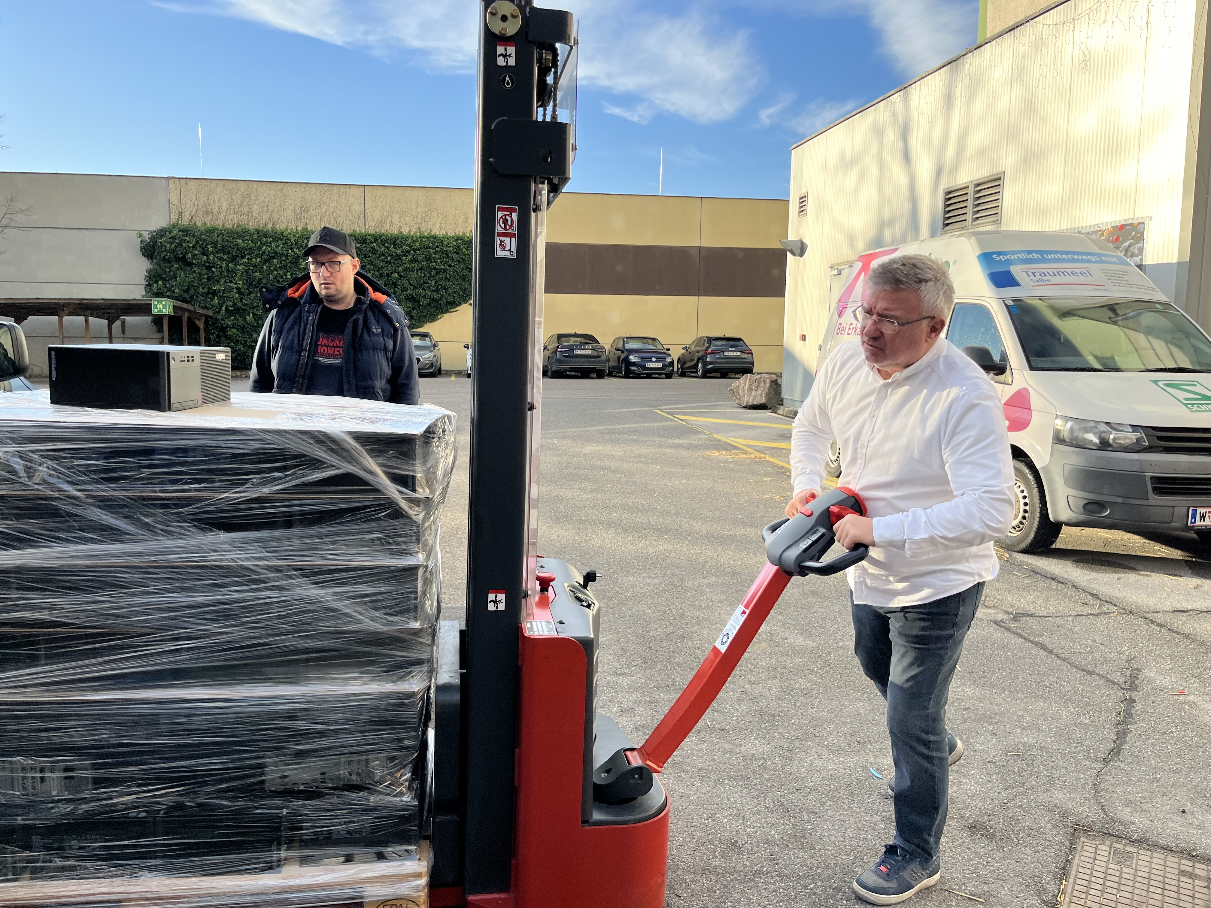 Wir möchten uns sehr herzlich bei Schwabe Austria für die großzügige Sachspende bedanken. Das Unternehmen hat uns eine Palette PCs sowie eine Vielzahl von iPads und Smartphones zur Verfügung gestellt – Geräte, die für unsere Arbeit von unschätzbarem Wert sind.