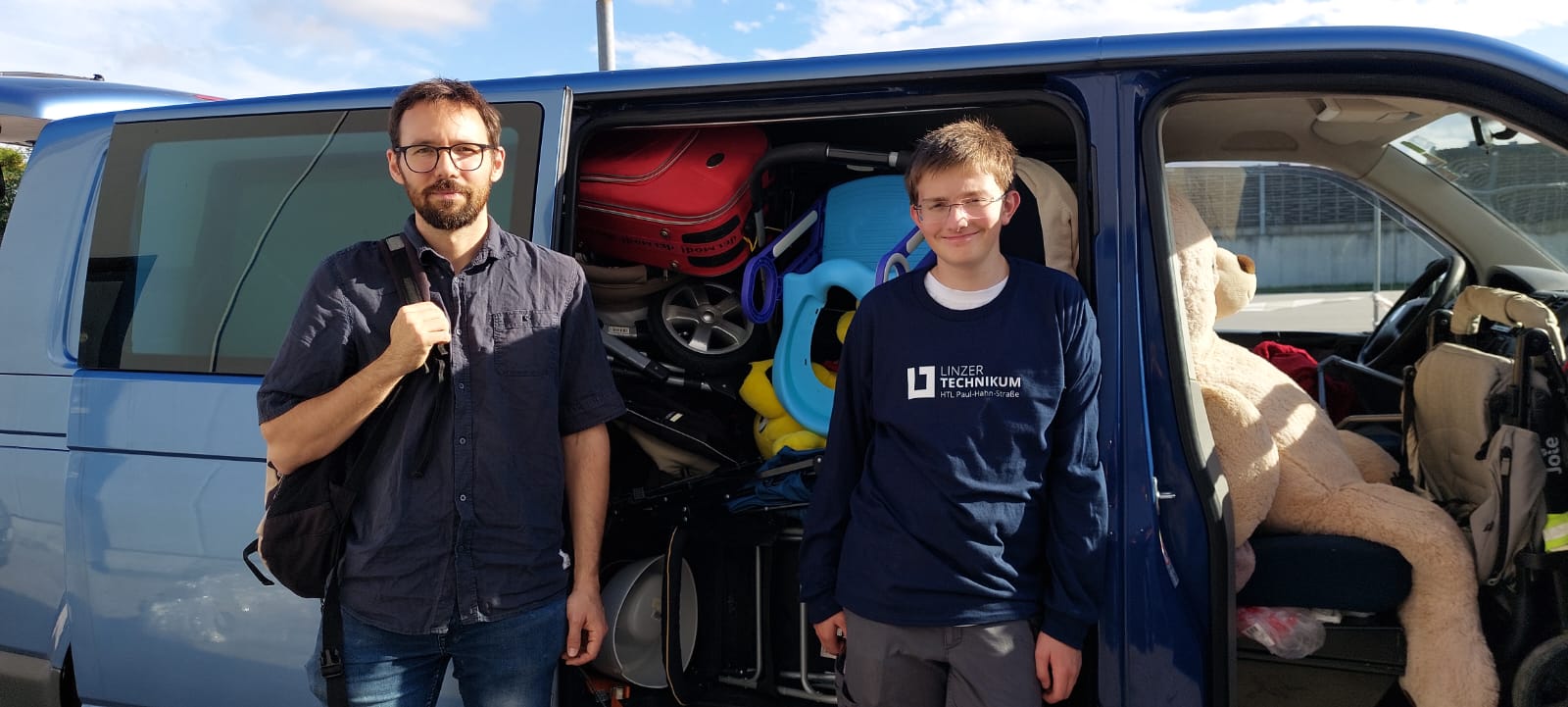 wie ihr ja wisst, machen wir ja viel mehr als "nur" Computer herrichten und verschenken - am Freitag war Beate Loinger in Linz bei Erich Hofmarcher von den Kiwanis und hat rd. 30 Kinderwägen abgeholt. Ein Teil ist schon in Traiskirchen im Flüchtlingslager und der Rest wird morgen zu Train of Hope gebracht. Bei beiden Einrichtungen kommen immer wieder Leute mit Kleinkindern an, die die Kinderwägen auf der Flucht verloren haben oder nicht mitnehmen konnten. Am Bild Carsten Aulenbacher und Leo Brunner, die in Linz beim Einladen geholfen haben.